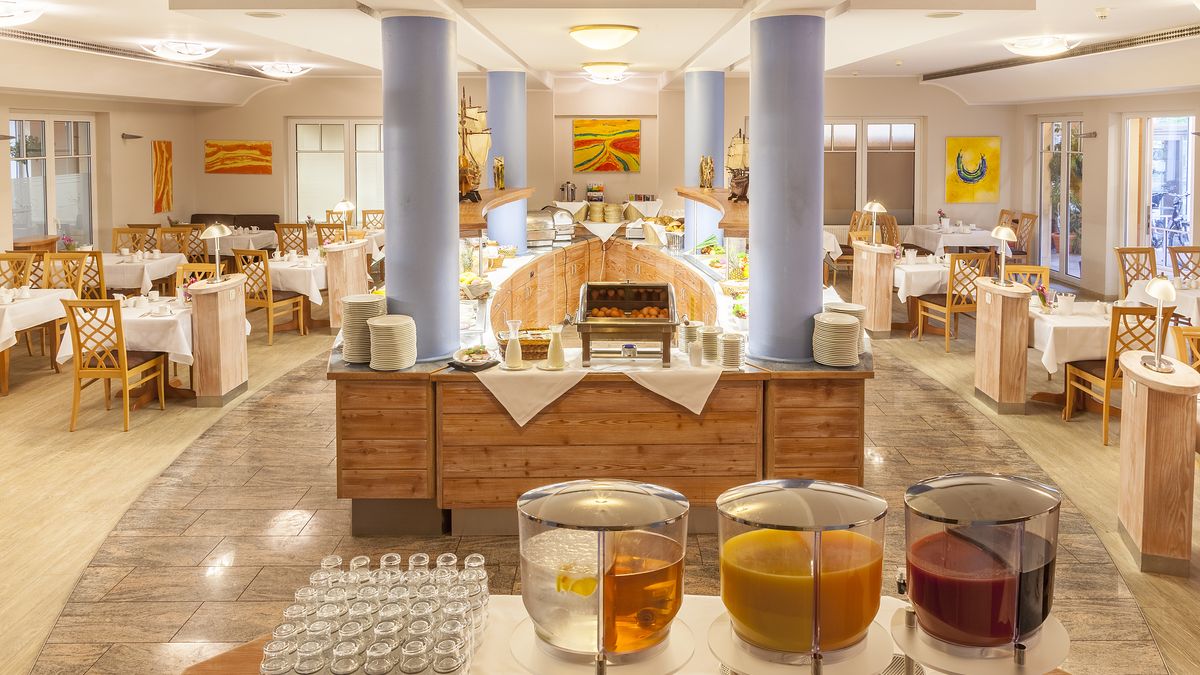 Jeden Morgen stärken Sie sich bei einem reichhaltigen Frühstücksbuffet. Das Wintergartenrestaurant verwöhnt Sie mit À-la-carte-Gerichten.
