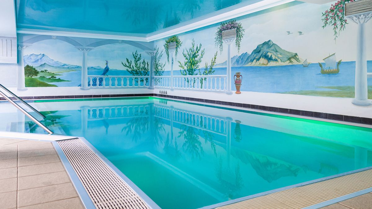 Entspannen Sie im Freizeitbereich des Strandhotel Atlantic mit einem Pool, einer Amethyst-Sauna, einem Dampfbad und einem Ruhebereich.